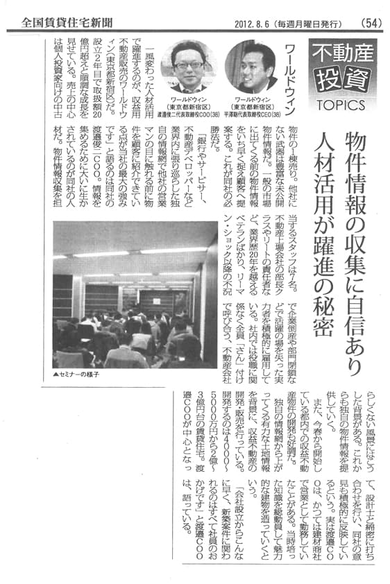 全国賃貸住宅新聞 2012年8月6日掲載